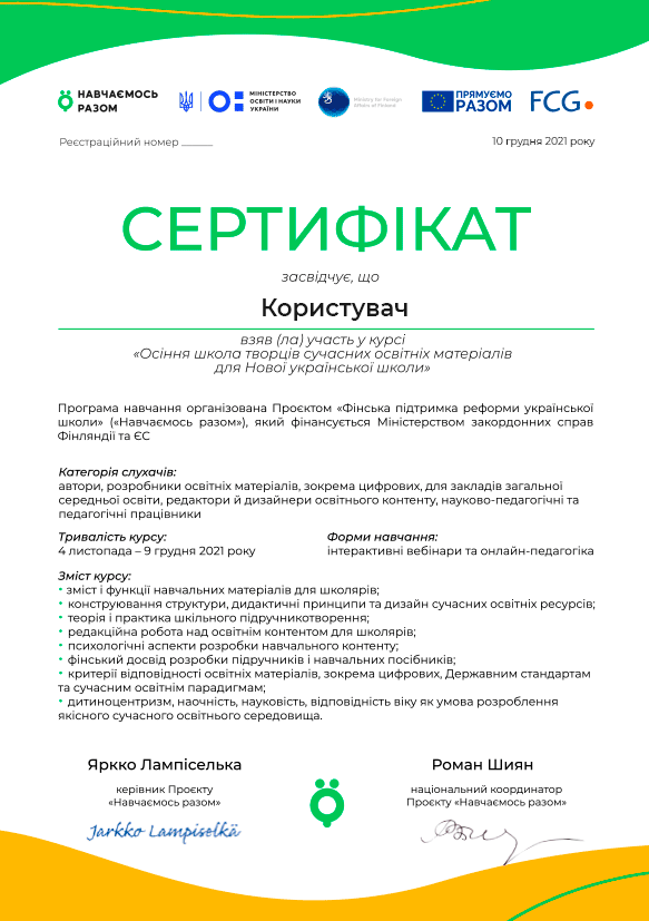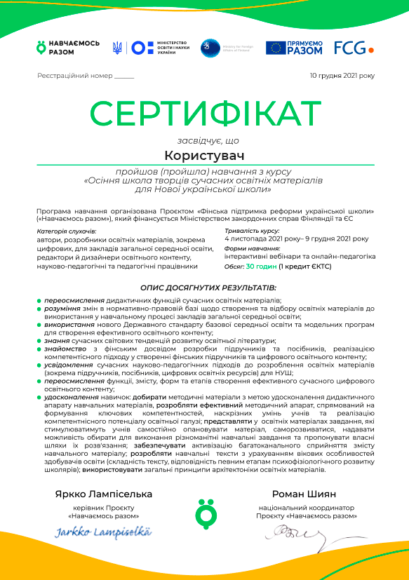 ОСІННЯ ШКОЛА ТВОРЦІВ СУЧАСНИХ ОСВІТНІХ МАТЕРІАЛІВ ДЛЯ НОВОЇ УКРАЇНСЬКОЇ ШКОЛИ